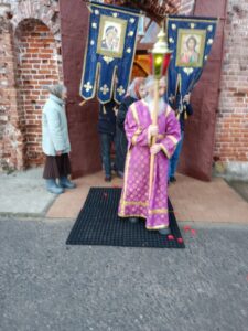 Вечером богослужение продолжилось с чином Погребения. Крестным ходом с пением заупокойного «Святый Боже, Святый Крепкий, Святый Бессмертный, помилуй нас…» Плащаницу пронесли вокруг храма.